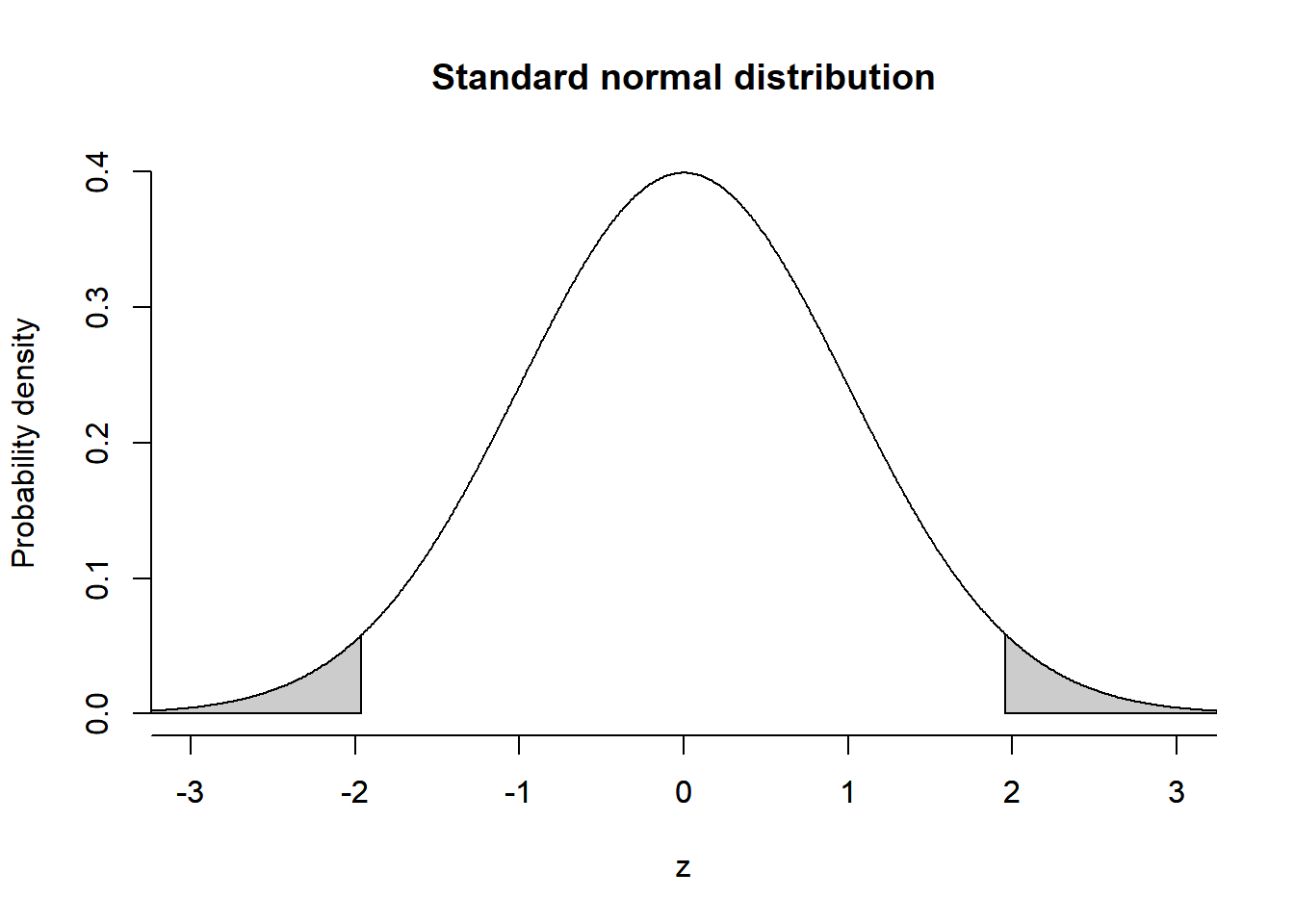polygon(x=c(z[z<=qnorm(0.025)], qnorm(0.025), min(z)), y=c(dnorm(z[z<=qnorm(0.025)]), 0, 0), col=grey(0.8))