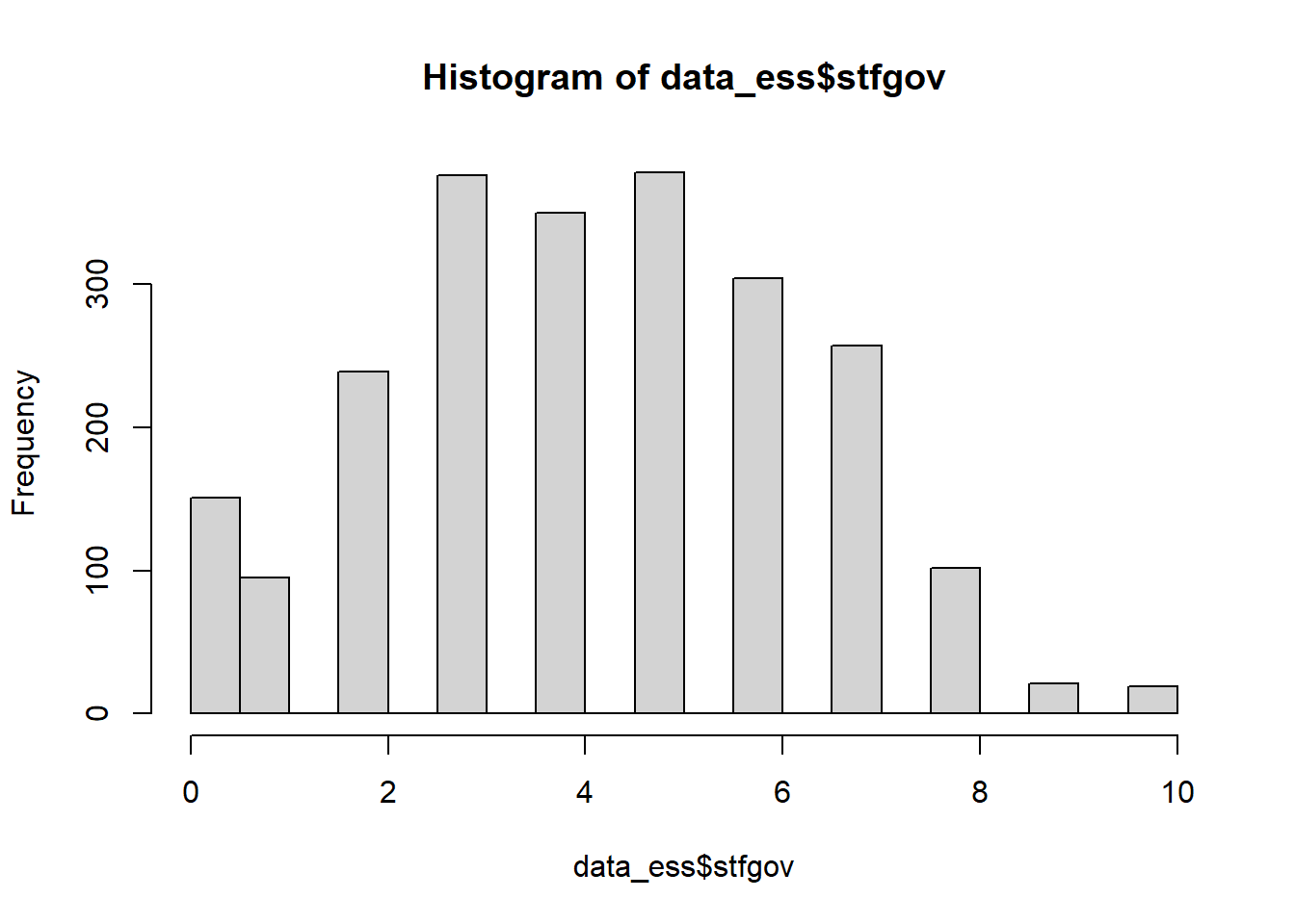 summary(data_ess$stfgov)## Min. 1st Qu. Median Mean 3rd Qu. Max. NA's